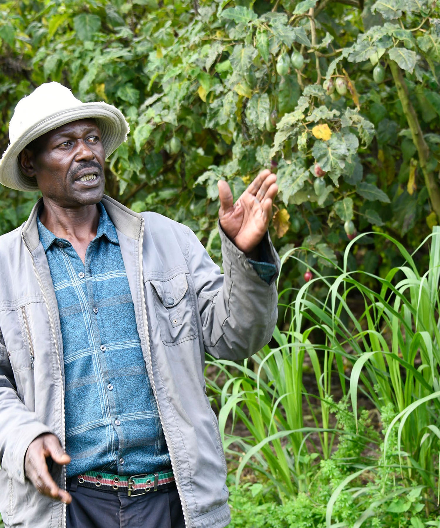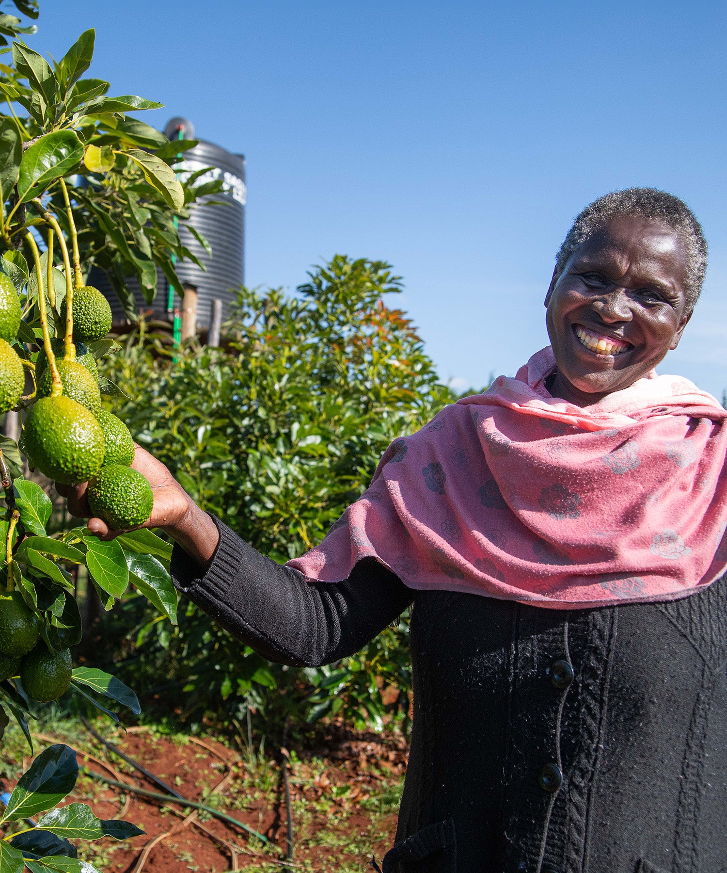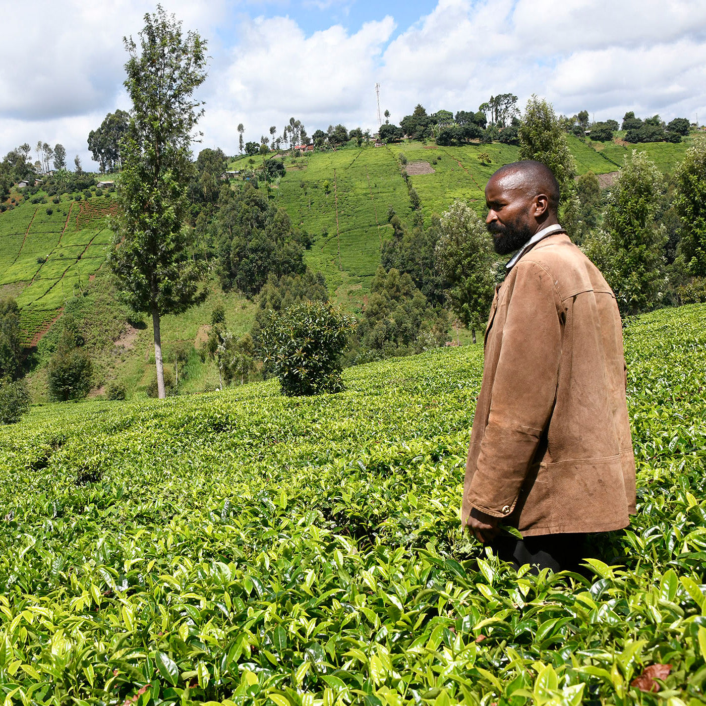 Sur la photo : Boniface Mbuthiaarm à Thika, au Kenya. Participant au projet depuis quatre ans, il a planté 200 avocatiers sur sa plantation de thé. Ces nouveaux arbres ont amélioré la qualité du sol, augmenté les récoltes et permis le retour des oiseaux et des papillons dans la région.